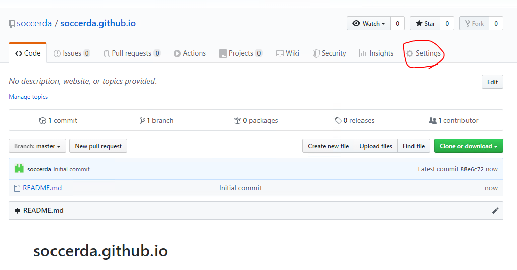 도메인은 계정 ID + ".github.io"