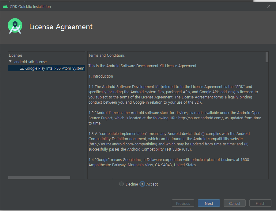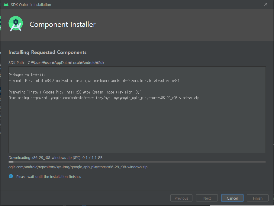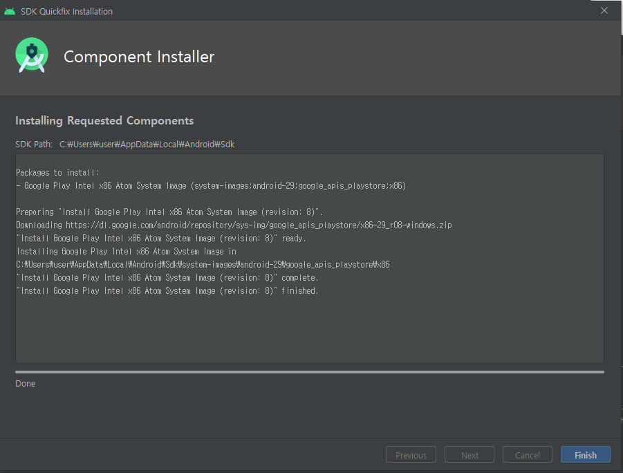 설치가 되면 Download 글자가 사라진다. 다운로드하였으니 Next 하여 에뮬레이터를 추가하자