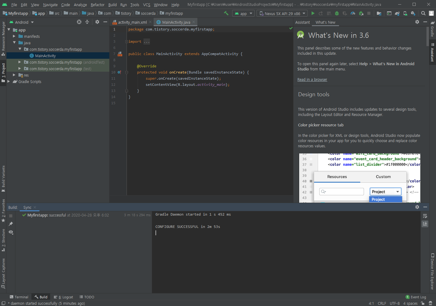 com.tistory.soccerda.myfirstapp으로 명명한다.