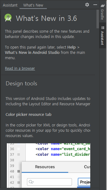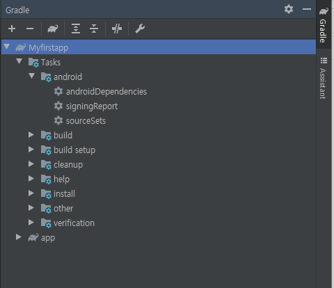 상단 우측은 도움말이나 Gradle 파일 정보를 볼 수 있다.