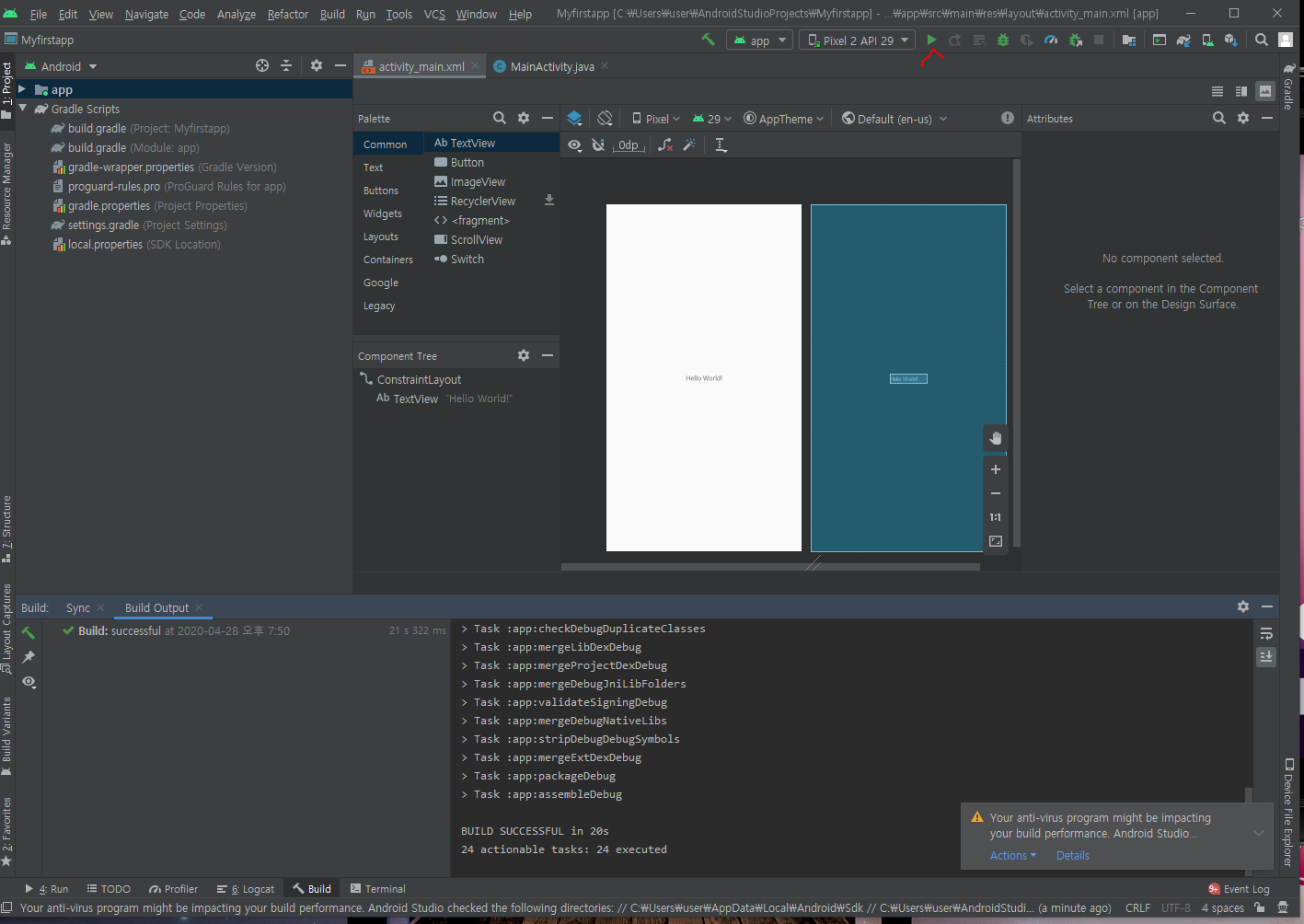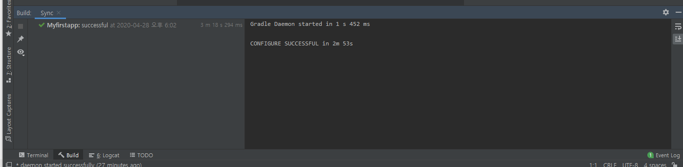 안드로이드 스튜디오에 프로젝트가 생성된 것을 볼 수 있다.