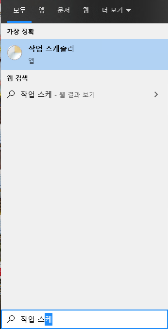 2. 시작메뉴->검색바에 작업 스케줄러