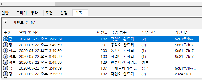 기록 탭에서 실제 수행되었는지 확인할 수 있는 로그를 볼 수 있다.