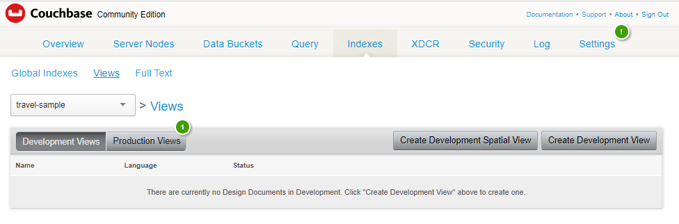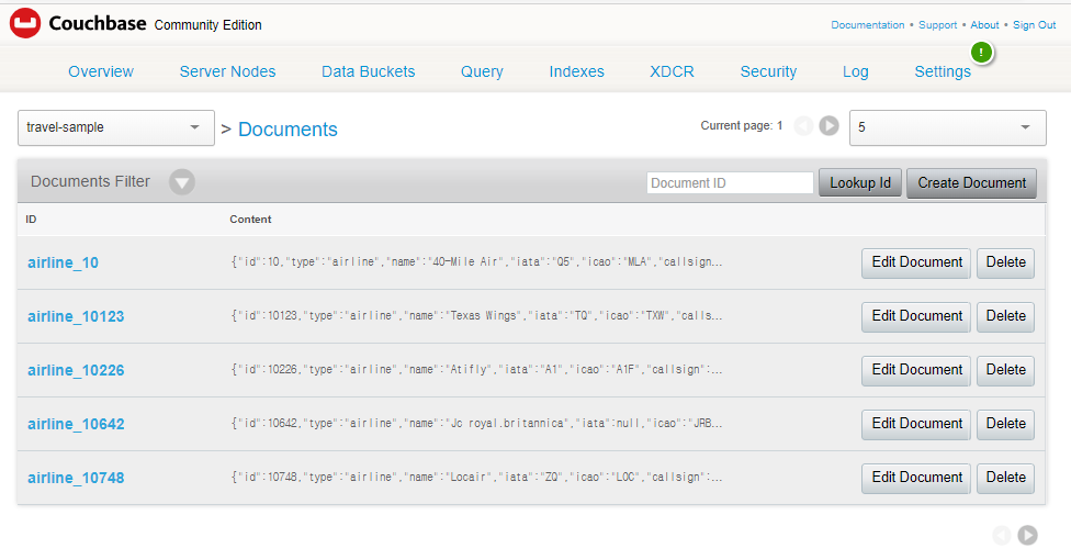 Documents 버튼을 통해서 실제 데이터를 볼 수 있고 Views를 통해 생성되어 있는 View를 관리할 수 있다.