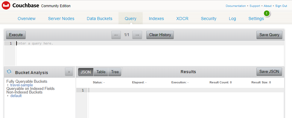Query에서는 N1QL이라 부르는 SQL 비슷한 쿼리 언어를 사용하여 질의할 수 있다. N1QL은 SQL을 사용해본 개발자라면 작성 가능하다. JOIN 등을 할 수 있다.