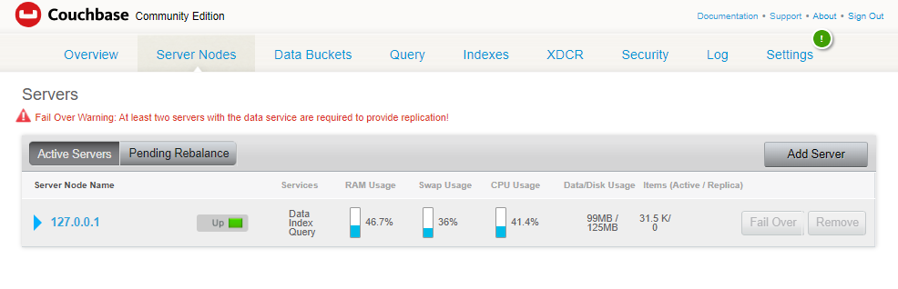Server Nodes탭에서는 이중화 설정을 할 수 있다. 우선 한대만 설치하였기에 싱글로!!