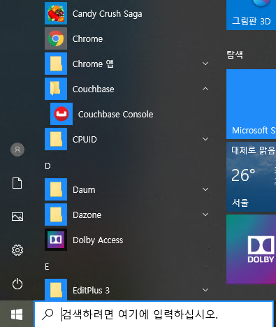 콘솔을 시작하려면 윈도 시작프로그램에 설치된 Couchbase Console을 클릭하여 시작하자.