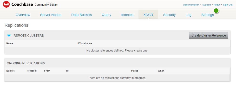 XDCR 탭은 카우치베이스의 복제본을 관리할 수 있는 메뉴이다.