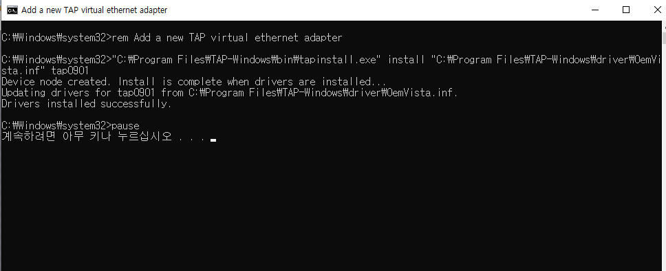 나는 OpenVPN을 사용하는 설치 프로그램에 옵션으로 TAP Virtual Ethernet Adapter라는 프로그램을 지원한다.