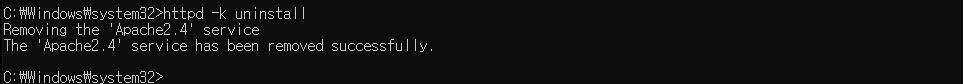 윈도 서비스에 아파치 삭제 : httpd -k uninstall